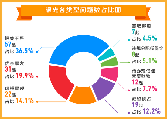 把关不严共57起,占全部问题比重36.5%。从各地通报案例来看,由于一些公职人员在低保资格审核上不严不实、对低保户情况变动情况掌握不及时不彻底,导致“漏保”“错保”等问题时有发生。比如,山西省阳泉市平定县冠山镇民政办主任翟怀成对低保工作审批、复核把关不严,致使应退出低保的49户村民没有及时退出,应降低标准的1户村民没有及时降低。此外,翟怀成还存在其他违纪问题。2019年3月,翟怀成受到党内严重警告处分。
