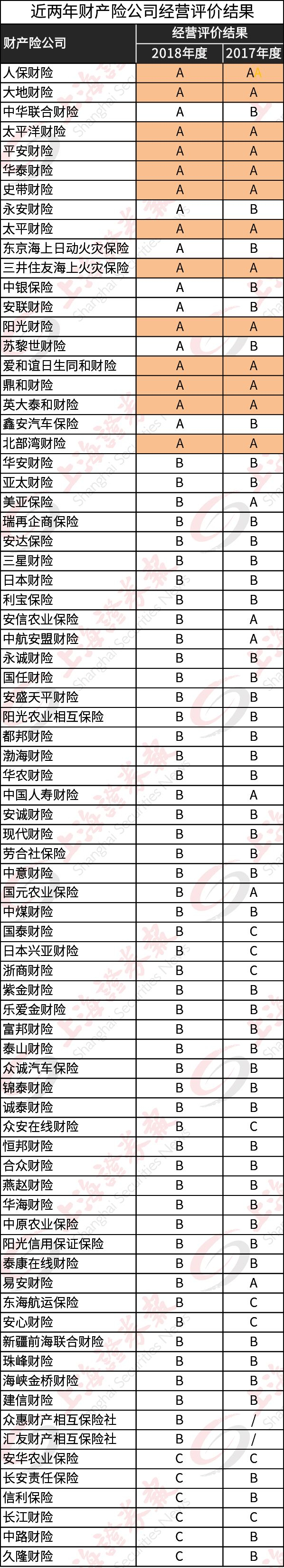 不难发现,连续两年获得A类评价的财产险公司有13家。分别为:人保财险、大地财险、太平洋财险、平安财险、华泰财险、史带财险、太平财险、三井住友海上火灾保险、阳光财险、爱和谊日生同和财险、鼎和财险、英大泰和财险、北部湾财险。