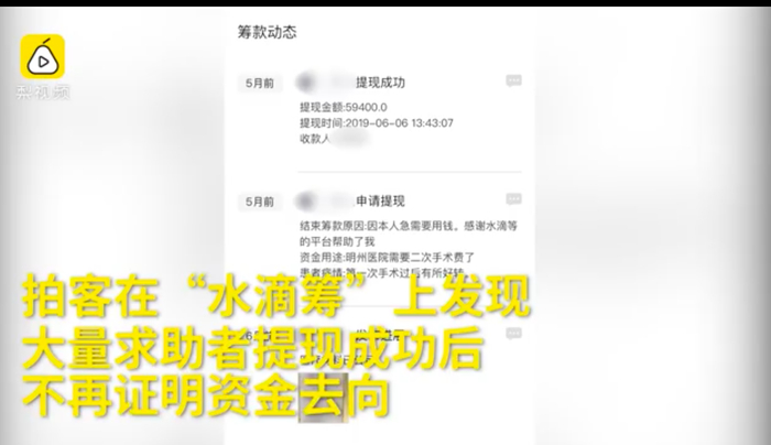 水滴筹宣传其已为患者筹得数百亿救命钱。梨视频曝光,水滴筹捐款使用缺乏监督,大量求助者提现成功后,不再证明资金去向。