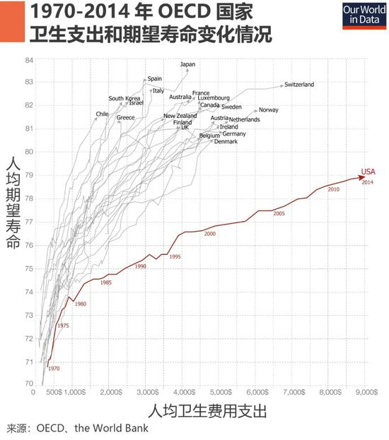 而在“小政府”的观念下,到底是建立以税收为基础的全民医疗,还是让没有保险的人自找出路,主导美国精英们永远会选择后者。这在发达国家中也算异类:根据统计,从1970年到2014年,在经合组织成员中,美国的医疗费用长的最快,但人均寿命却增长最慢。