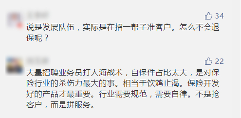 对于保险公司而言,实行人海战术的一个隐性期望是,虽然大多数人最终无法留存,但是其可以通过自保件成为保险公司的客户,即便后续脱落,对公司也有利无害,一方面公司不再需要支付续期佣金,另一方面还会有保费源源不断进入,对于公司也算是一种贡献。