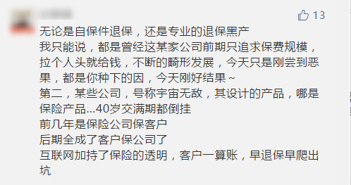 一方面,当自保件越来越多,很多不是为了真正的风险保障,而是为了完成任务,达成考核,一旦代理人脱落,持有这部分保单就变得没有意义。