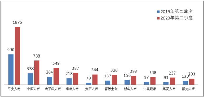 人身险方面,2020年第二季度寿险公司保险消费投诉17532件,同比增长46.03%。其中,理赔纠纷2328件,占人身险公司投诉总量的13.28%;销售纠纷7654件,占比43.66%。