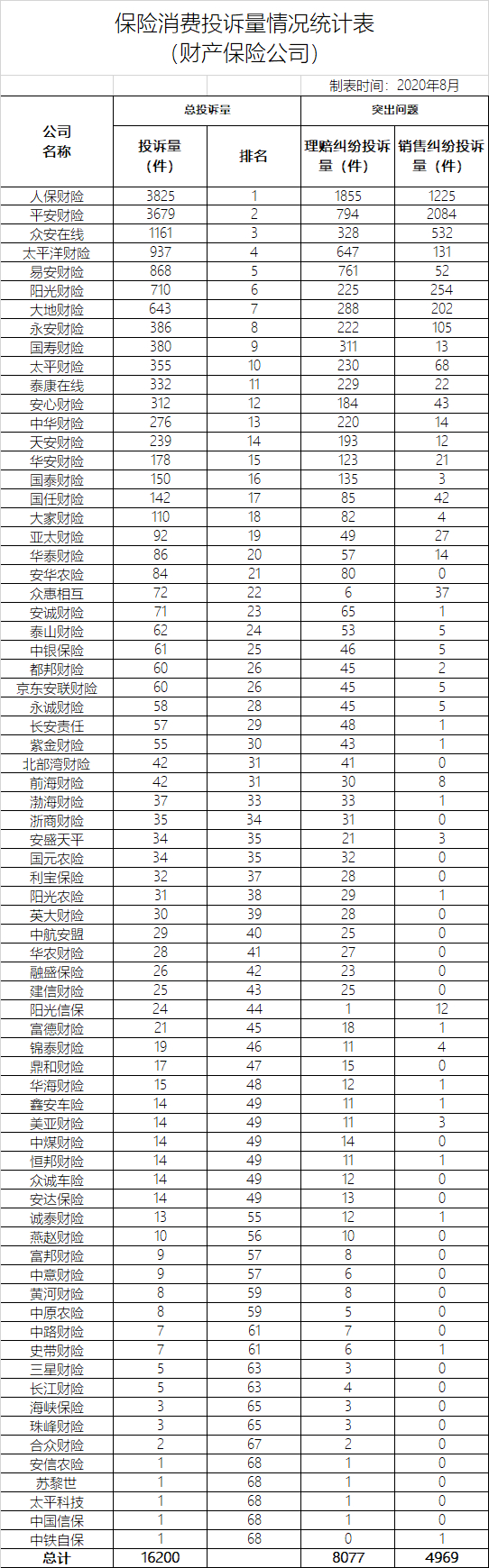 8月13日,银保监会官网通报2020年二季度保险消费投诉情况,累计接收保险消费投诉33732件,同比增长26.86%。其中,财险公司保险消费投诉16200件,同比增长11%,人保财险、平安财险、众安在线3家公司投诉量排名前三;相比之下,人身险公司保险消费投诉量则大增47%至17532件,占投诉总量的51.97%,前三名为平安人寿、中国人寿和太保寿险。