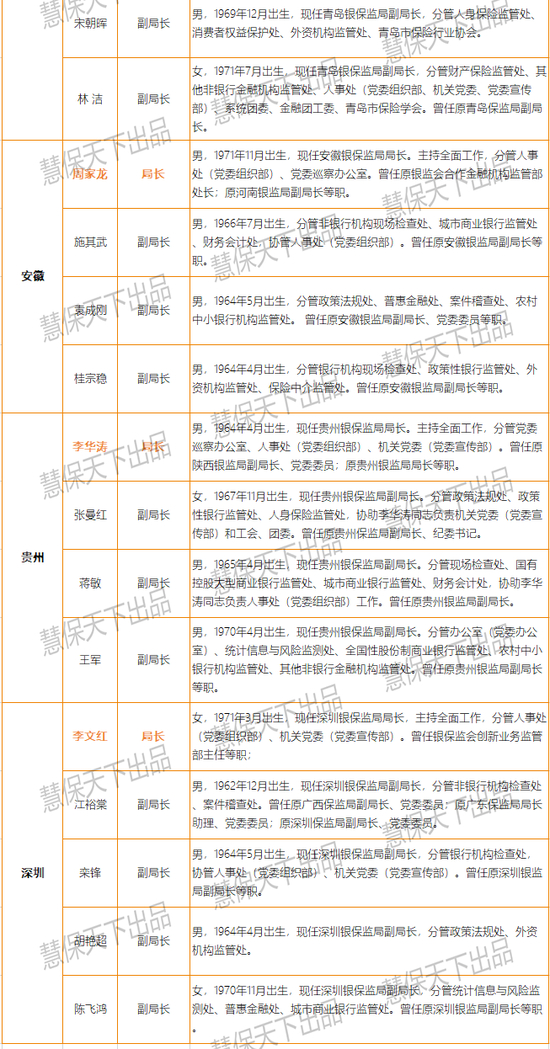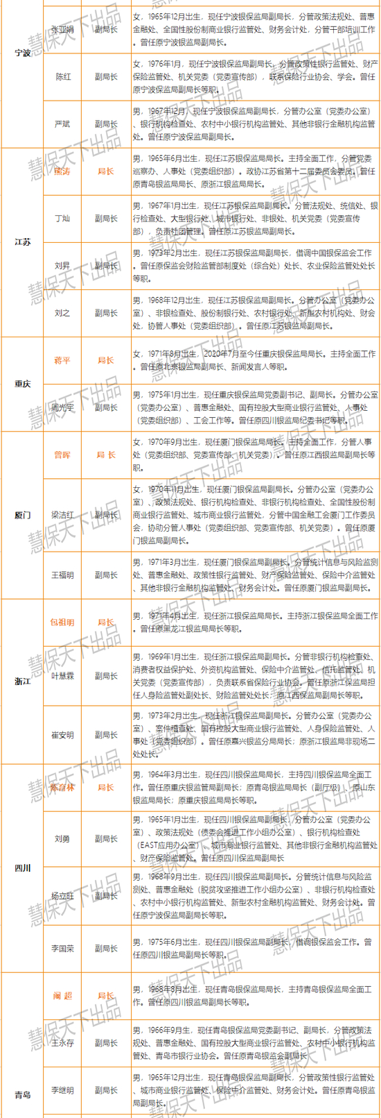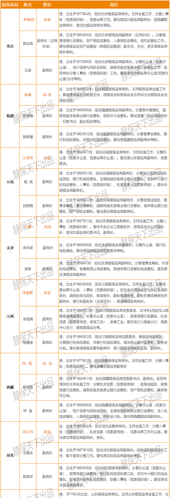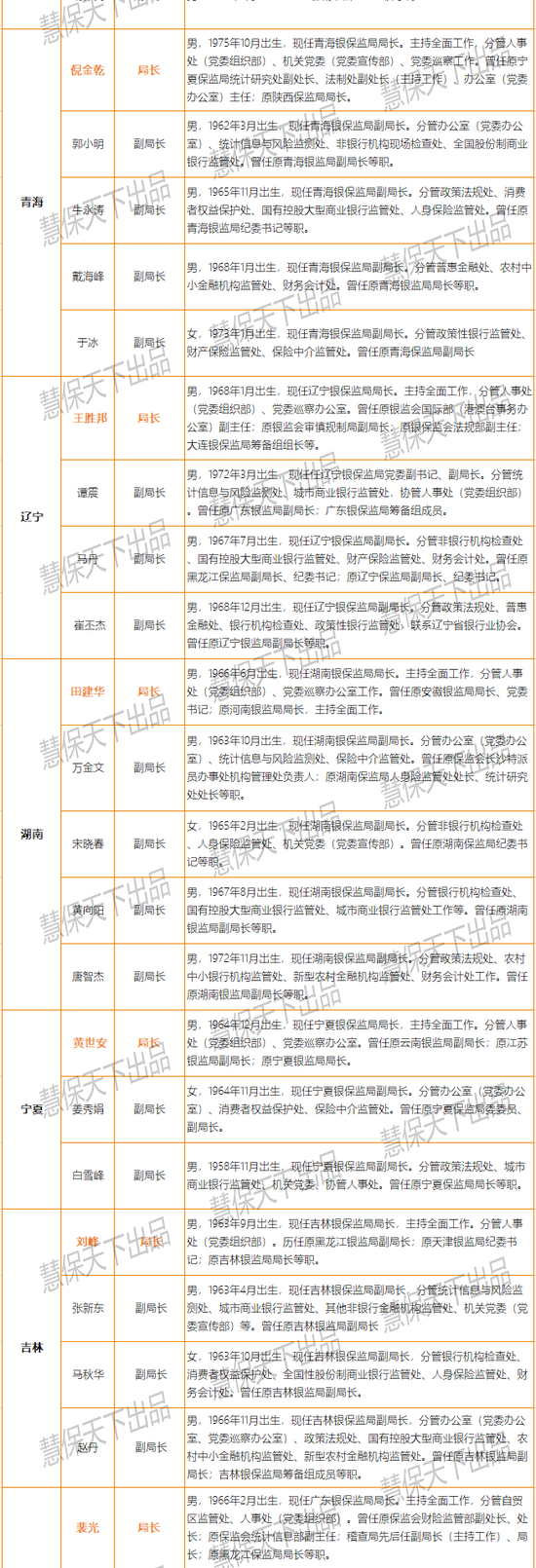 属地监管时代 36家银保监局局长、副局长全整理(附表)
