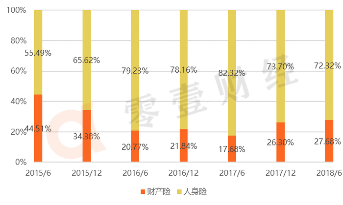 2015H-2018H,互联网保险业务中,人身险为互联网保险收入的主要构成一般在七成左右(见图2)。