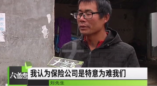 随后记者跟刘先生一起到保险公司了解情况,公司的工作人员表示,必须要是被保险人本人的银行卡才行,没卡就没法把现金打出去,并且表示不接受刘先生等人的采访,至于这个事情会核实好的,刘先生说当时保险公司说给他3万2千多块钱,但一天考虑的时间都不到,就直接拒赔了。