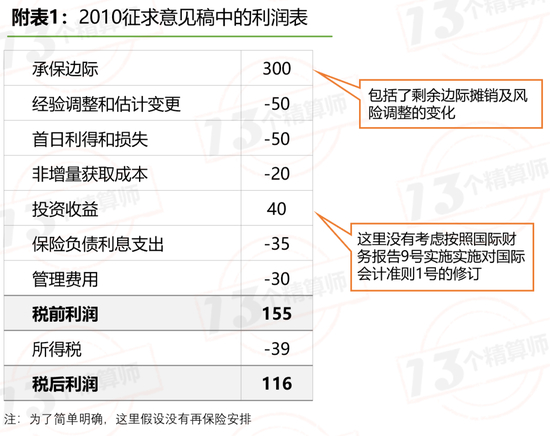 这种处理的好处就是避免了讨论保费中有多少储蓄成分(或者现在说是投资成分),保险风险是否重大、是否需要分拆的难题。这里我们模拟了一个当时建议的利润表给大家参考(附表一)。