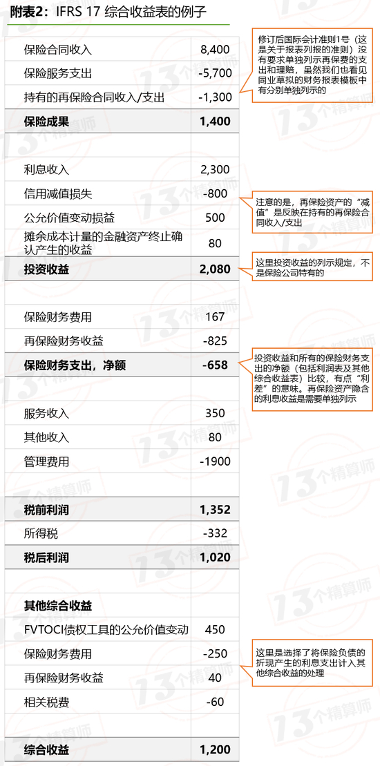 读者可以发现,保费和赔付并没有要求反映在综合收益表上。