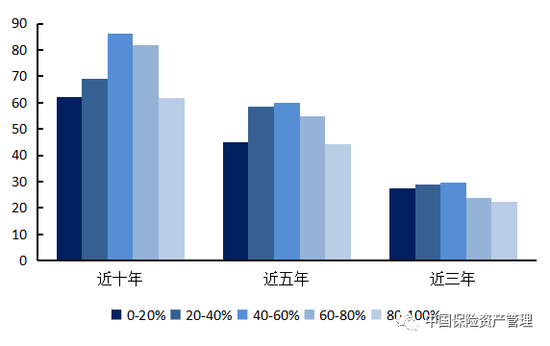 然而,由于市场短期价格的影响因素众多,导致短期基金业绩很难真实反应基金经理的投资能力。如图2显示,不加其他区分地持有上一年度表现最好的基金,从统计角度看并不是好的基金投资策略,无论是三年、五年、十年的累计收益率,都不如简单持有上一年中枢分位的基金收益高。