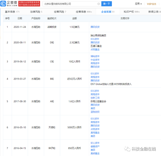 据企查查显示,水滴公司成立以来已有7轮融资历程,总额超过30亿元人民币。