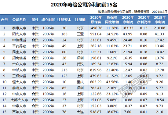 来看一下各人身险公司2020年的业绩表现。