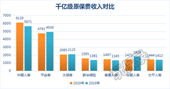 原保费收入过千亿的公司仍是7家,分别是国寿、平安寿、太保寿、新华保险、泰康人寿、华夏保险、太平人寿。