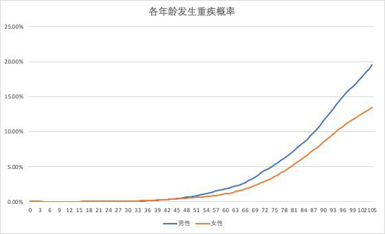 我们首先可以估算出按年龄划分的重疾发生率,
