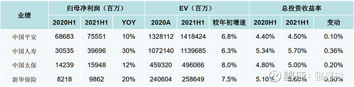 也正因此招商证券对于几大巨头在上半年的总投资收益、EV 增速还有利润增速,还是比较乐观的。
