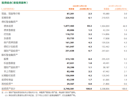 我们先来看平安的投资组合,尽管市场都很关注平安在股权市场的一些动作,但是作为稳字当头的保险资金,债券投资永远是占大头的一块。