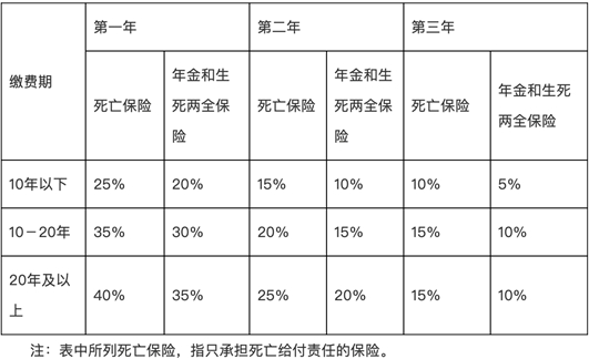 按照当时的规定,个人寿险保单支付的直接佣金标准,趸缴保费的直接佣金占保费的比例不得超过4%。对于期缴保费的直接佣金总额,占保费总额的比例不得超过5%。并且,监管还对直接佣金占各保单年度保费的比例上限作出了规定,具体为: