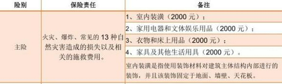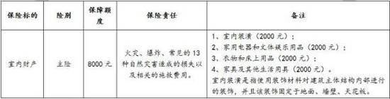 自住、出租、租住房屋均可投保,保障室内附属设备包括暖气、煤气管道、厨房设备等,及由于火灾、自然灾害、外界物体坠落或倒塌等原因造成的房屋装修损失。