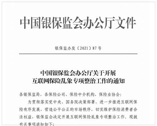 近日,中国银保监会办公厅下发《关于开展互联网保险乱象专项整治工作的通知》(以下简称“通知”),针对互联网保险存在的违规乱象祭出重拳。