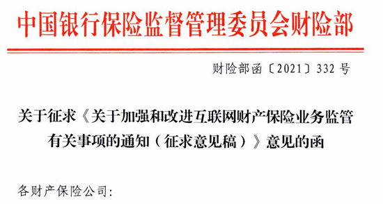 9月13日,《国际金融报》记者从有关渠道获悉,银保监会财险部近日向各财险公司下发征求《关于加强和改进互联网财产保险业务监管有关事项的通知(征求意见稿)》(下称“征求意见稿”)意见的函。旨在进一步规范互联网财产保险业务发展,推动财险业线上化转型。