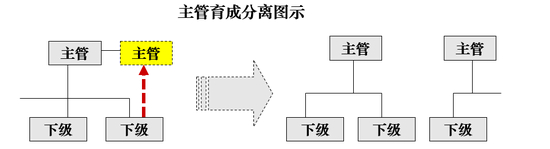 所谓队伍的分离,是指主管与已经升至与自己同职级的被招募者脱离所属关系,解除管理关系。如下列图示。