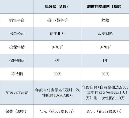 近日,蚂蚁也推出了一款与众安财险合作的“城市住院津贴”,在“城市保”专题之下,该产品的给付条件为“自付+自费”达到3万元,契合了惠民保免赔额,补充免赔额下的缺失部分。