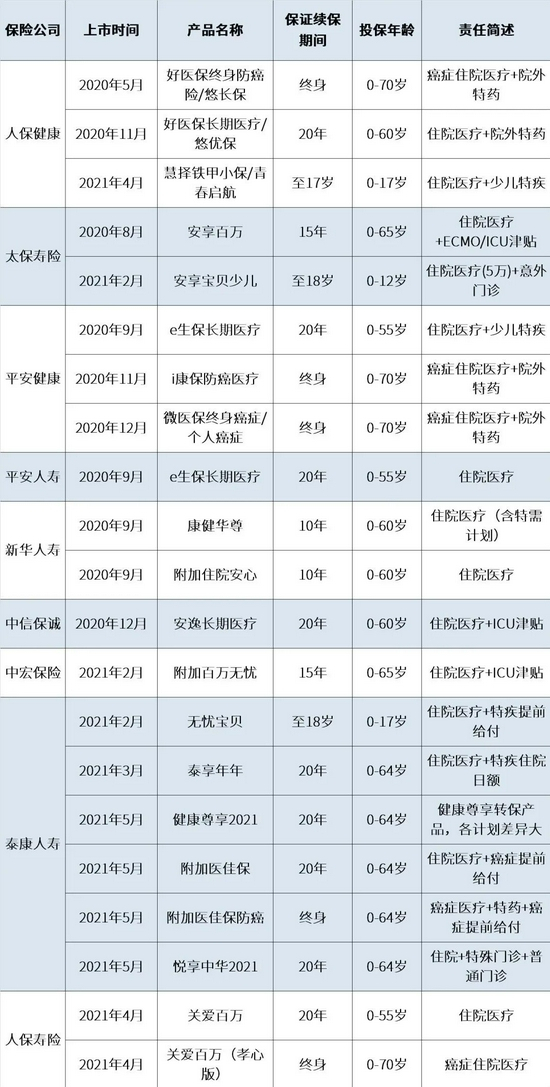 医疗险在2020到2021年的演进受到两个事件的深刻影响:一个是城市定制型商业医疗保险(以下用市场俗称的“惠民保”代替)的进一步普及;一个是短期健康险新规的落地。惠民保使得百万医疗险重新思考自身定位,包括保障范围的定位和可保人群的定位;短期健康险新规进一步催化了医疗险长期化的步伐。