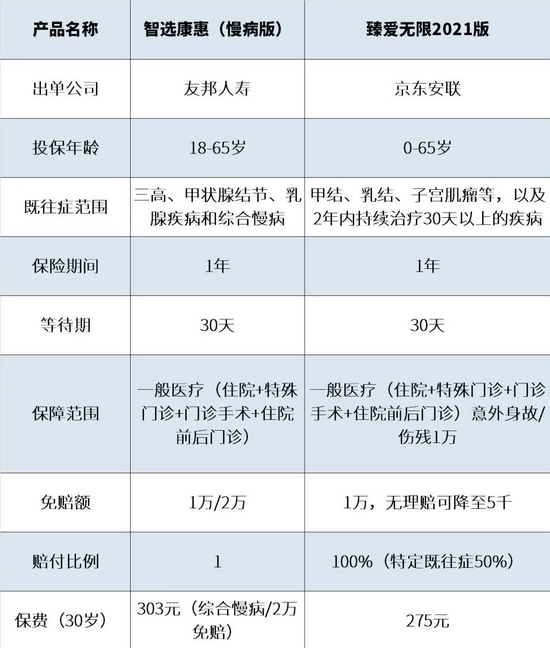 在健康人群发展到极限的情况下,面对惠民保的竞争压力,行业对于拓展可保人群逐渐重视,慢病产品开发也提上日程。太平人寿的超e保2021(慢病版)、平安健康的平安i康保(慢病版)、友邦人寿的智选康惠(慢病版)都是为不同既往症人群提供与百万医疗承保范围一致的保障,其中,智选康惠为不同的既往症人群设定了不同的保费计划,在承保维度上更加精细。