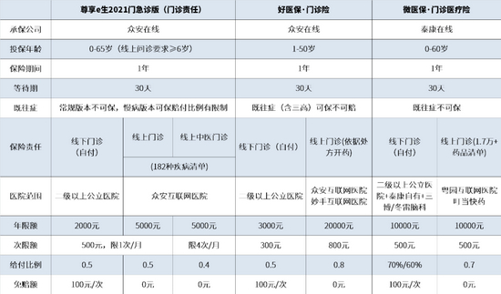 以下是众安、蚂蚁和微保的专属门诊险,形态上大同小异: