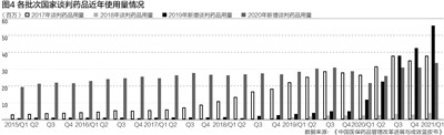 在2020年新冠肺炎疫情暴发后,在全药用量大幅下降的情况下,2019年新增谈判药品用量增长率依旧呈显著增长趋势:2020年第三、四季度用量同比增长率657.6%、768.6%;2020年新增谈判药品在2021年3月1日正式实施,当季度用量同比增长率即达到55%。