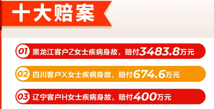 从十大理赔案例来看,赔付金额多在百万元之间,高端客户保额依然不足