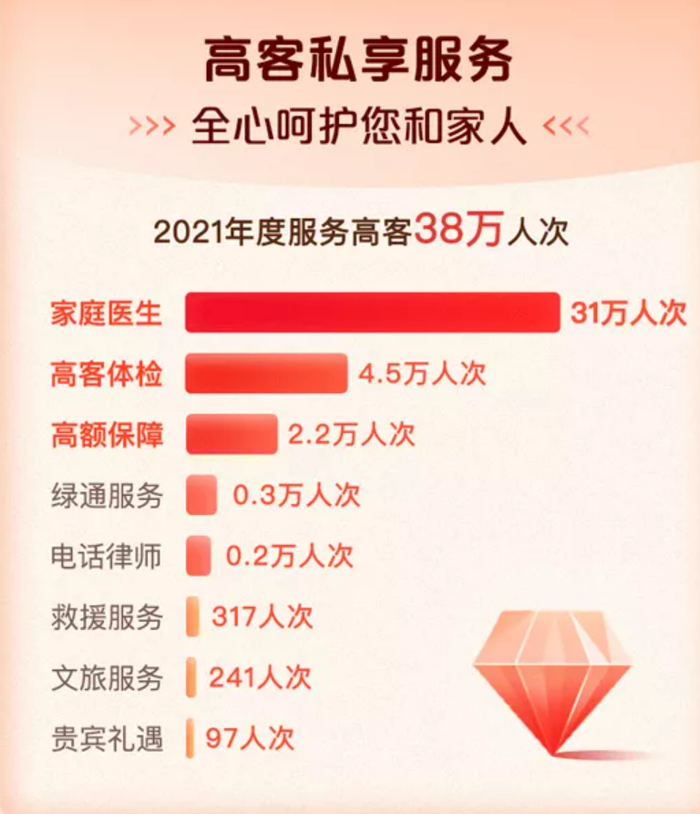 例如针对细分人群不断推陈出新。泰康人寿理赔报告显示,2021年,其服务高客38万次,其中家庭医生、高客体检、高额保障是使用频次最高的三项服务。由此可以看到,对于高端客户而言,保险保障只是服务的一种,相关配套服务才是“最实用”的。