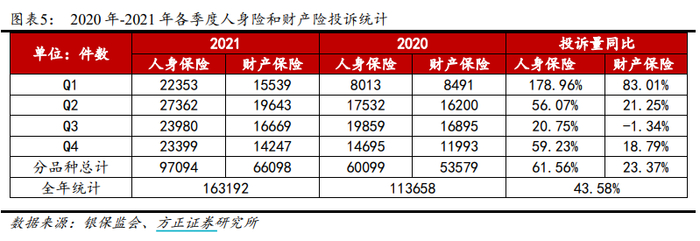 《投资者网》根据银保监会数据统计,2021年,中国银保监会及其派出机构共接收并转送涉及保险公司的全年保险消费投诉为16.3万件;2019年以来年投诉量同比增速分别为6%、21%、44%。