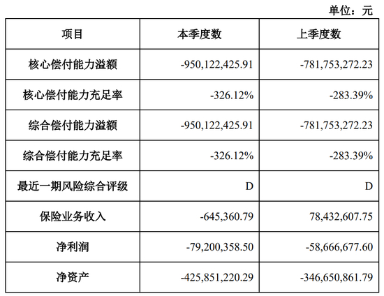 业绩方面,财报显示,安心财险2021年实现保险业务收入3.73亿元,较2020年同比下跌78.75%,净利润亏损1.95亿元。偿付能力方面,安心财险2021年第四季度偿付能力报告显示,核心偿付能力充足率以及综合偿付能力充足率均为-326.12%,较上季度均下跌了42.73个百分点。