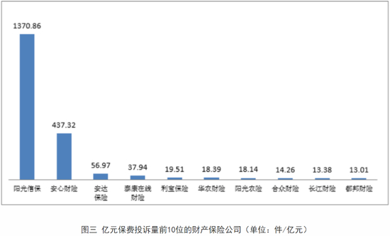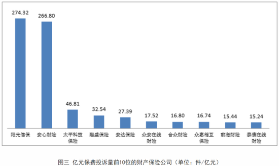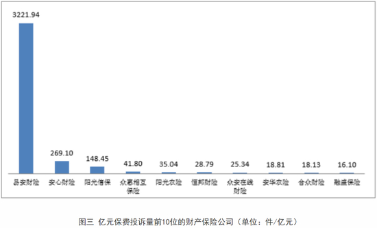 银保监消保局发布的保险消费投诉情况的通报显示,2021年第一季度在财产保险投诉量与业务量对比情况中,安心财险位居亿元保费投诉量第二,投诉量为269.10 件/亿元。