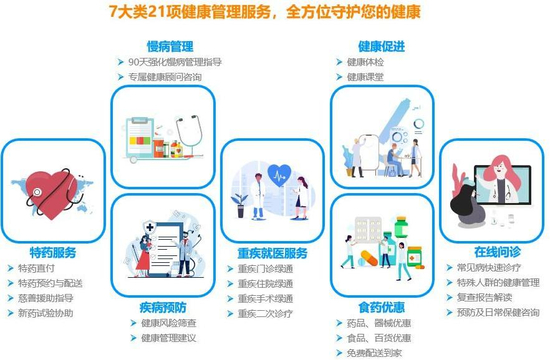 一类是健康服务:覆盖了健康咨询、健康体检、疾病预防等内容;