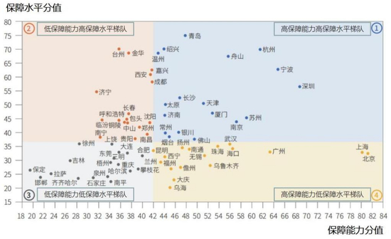 保障能力:包括城市经济水平、财政支持能力、医保基金支持能力、罕见病诊疗能力,可以理解为该城市在医疗保障方面的“硬实力”。