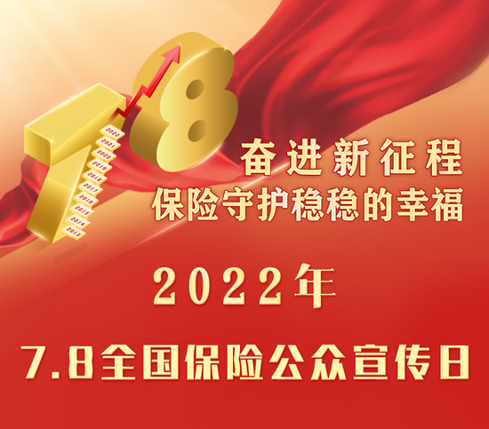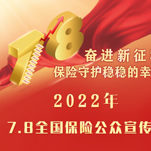 2022年是党的二十大召开之年,是实施“十四五”规划关键之年,是迈上民族全面复兴第二个百年奋斗目标新征程的重要一年,也是第十个“7.8 全国保险公众宣传日”。聚焦保险业坚持以人民为中心,回归保障本源,服务国家战略,以实际行动迎接党的二十大胜利召开,确定2022年“7.8全国保险公众宣传日”年度主题为:奋进新征程 保险守护稳稳的幸福。