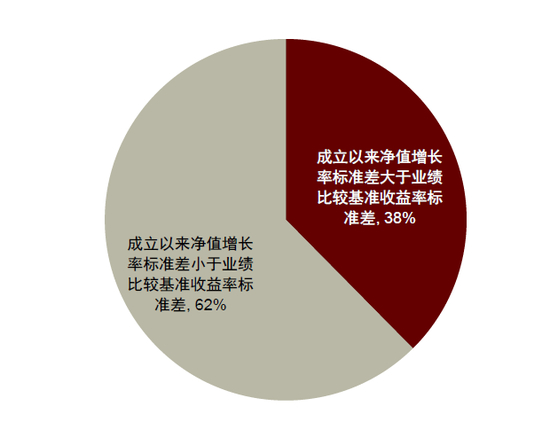 图表:成立以来62%基金规模收益率标准差小于业绩比较基准收益率标准差
