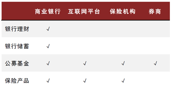 ►商业银行:强于渠道端能力,提升产品端和服务端能力打造综合性平台。银行拥有渠道优势及客户信任度,但在产品端能力和服务端能力上略显不足。尽管资管新规后理财产品向净值化转型、银行理财子投研体系不断完善,但相较于基金公司及券商,理财子在投资上仍以流动性强、表现稳健的固收类资产为主,投研能力有待提升。从服务端看,客户经理仍以产品销售为导向,在为客户提供资产配置解决方案以及个性化服务方面有待加强。未来,我们认为银行及理财子应不断提高买方投研能力;此外,银行应基于其较全的用户画像深度挖掘用户需求,提供养老生涯规划、资产配置方案等综合金融服务,实现从单纯产品销售向定制化养老服务转型,同时需要不断提高产品附加价值、探索跨界合作以实现产品端及服务端能力提升。