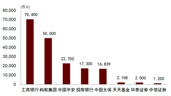 图表:银行、互联网三方、保险机构均具有较强客户基础,券商客户基础相对较弱
