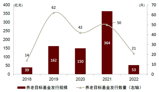 2018年2月证监会发布《养老目标证券投资基金指引(试行)》,截至2022年5月19日共发行189只产品,整体而言,养老目标基金具备以下特点: