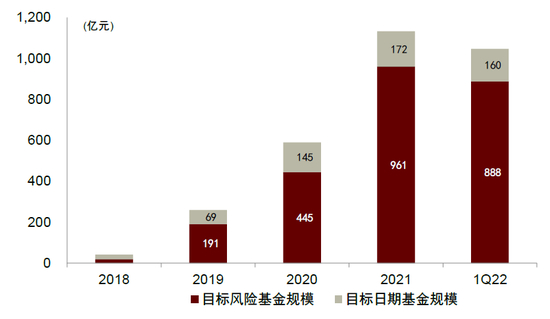 图表:1Q22养老目标基金规模达1047亿元,其中目标风险基金规模占比较高