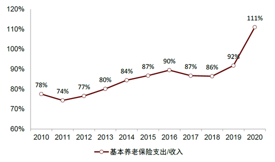中金:2020年基本养老保险出现缺口 支出/收入达111%