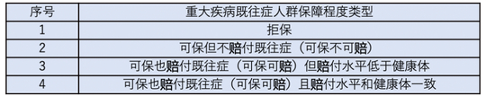 表2 重大疾病既往症患者保障程度四大类型