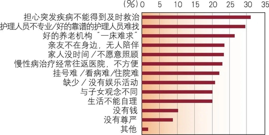 对于何时去专业机构养老,受访者的选择排在前三位的是生活不能自理时、需要更专业照护时以及不想增加子女负担时。说明有三分之一的城市居民已经意识到失能失智和临终照护是刚需。