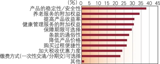 关于传统寿险需要改善的地方,受访者希望传统寿险改善的内容排在前三位的是产品的稳定性/安全性、养老服务的附加权益和提高产品的收益率,占比分别为38.11%、34.14%和31.08%(见图13)。说明城市居民除看重寿险产品本身的稳定与安全性、收益外,还希望能获得附加的养老服务权益。