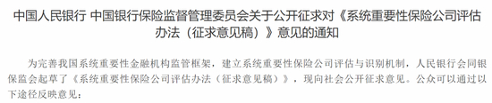 通知表示,为完善我国系统重要性金融机构监管框架,建立系统重要性保险公司评估与识别机制,人民银行会同银保监会起草了《办法》,现向社会公开征求意见。