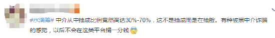 对此有网友表示,“肯定有贩卖个人信息,我留了个手机号就不停打电话给我,绝了”、“中介从中抽成比例竟然高达30%-70%,这不是抽成而是在抽脸。有种被黑中介诈骗的感觉,以后不会在这类平台捐一分钱”。
