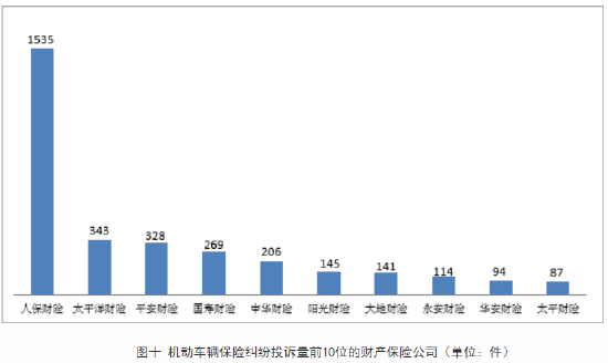 1.人保财险的机动车辆保险纠纷投诉量位列财产保险公司第一。财产保险公司机动车辆保险纠纷投诉量居前10位的为:人保财险1535件,占人保财险投诉总量的70.93%;太平洋财险343件,占比66.73%;平安财险328件,占比52.82%;国寿财险269件,占比79.82%;中华财险206件,占比65.61%;阳光财险145件,占比38.77%;大地财险141件,占比43.65%;永安财险114件,占比74.03%;华安财险94件,占比72.87%;太平财险87件,占比45.55%。